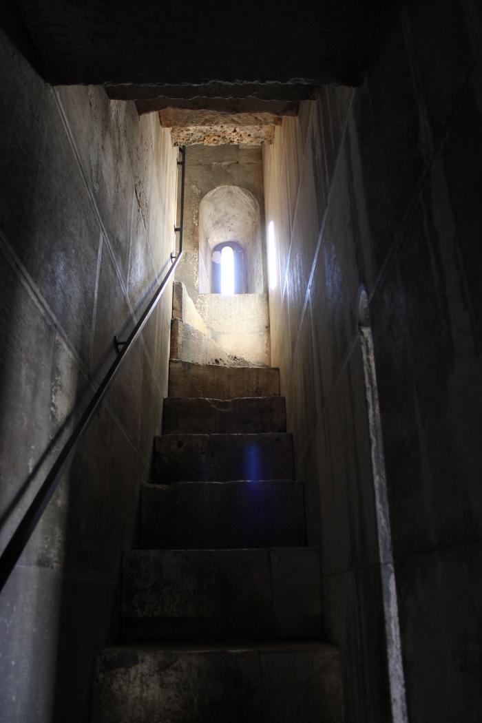Страх Божий. Крутая винтовая лестница идет внутри башенки. Двоим не разойтись. Ползешь, как в трубе. А потом – потом из трубы попадаешь на отрытую винтовую лестницу. И хотя ИНОГДА окружающее закрыто стенами, в основном приходится жаться к перилам, что в центре. Высоты я боюсь и поэтому особого восторга не испытывал, но старший пер как танк. За ним – младший. Пришлось и старичку, сжав все, что можно, карабкаться.