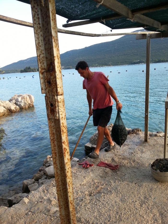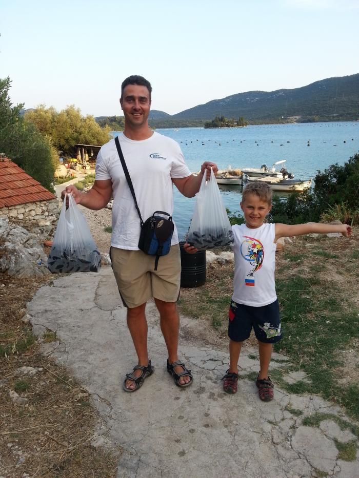 Дубровник. Дубровник и Хорватия, как я понимал – это не совсем одно и то же, поскольку Дубровницкая республика не так давно присоединилась в Хорватии. Путь из Макарски туда не близок – более 3 часов – и это не по трассе, а по довольно таки извилистой дороге по горам, вдоль берега моря. Из интересного – нас ждал проезд по территории Боснии (небольшой участок побережья, которым владеет эта страна). Там же, по дороге, расположен городок Стон. Известный как «устричная мекка» – все окружающие места на воде заняты под плантации мидий и устриц. Естественно там самая привлекательная цена на свежайшие мидии-устрицы. Как раз утром перед отъездом к нам подошел Младен, хозяин, и пригласил вечером посидеть в компании, попить вина и угоститься вкуснятинкой всякой местной во дворе виллы, у камина, под персиковым деревом. Ну мы конечно согласились… Я тогда предложил чего-нибудь от нас. Тут он мне и рассказал про место, где можно не дорого купить свежих мидий.