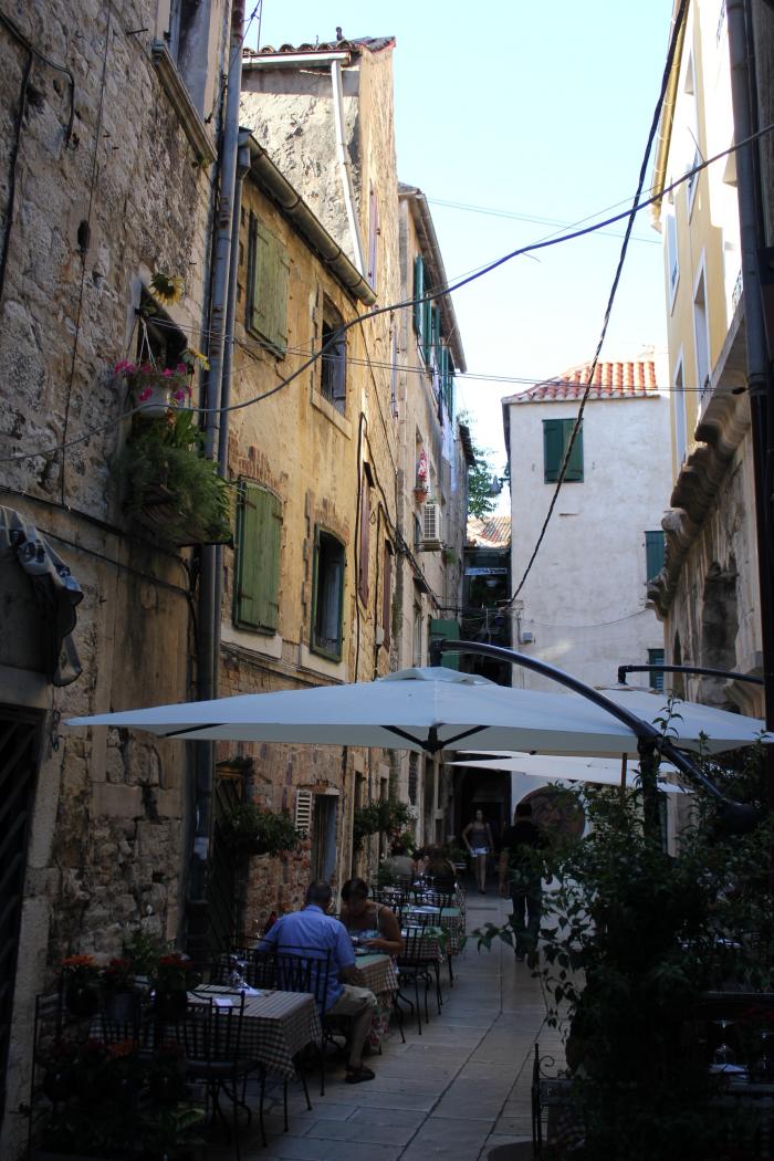 Улочка узкая, на нее несколько столов со стульями поставят и вот готова кафешка. Мимо люди ИНОГДА проходят, а ты сидишь и ешь. Забавно освежают воздух в таких кафешках. Специальные разбрызгиватели воды и рядом вентилятор. Тебя периодически обдает холодненькой водяной пылью. А в целом Сплит не впечатлил. Взгляд конечно беглый и слишком поверхностный, но тем не менее… Гораздо в этом плане лучше себя показал