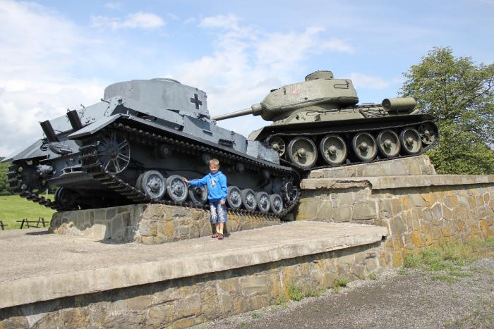На обочине, именно в горной части, много памятников войны. Танки, пушки…