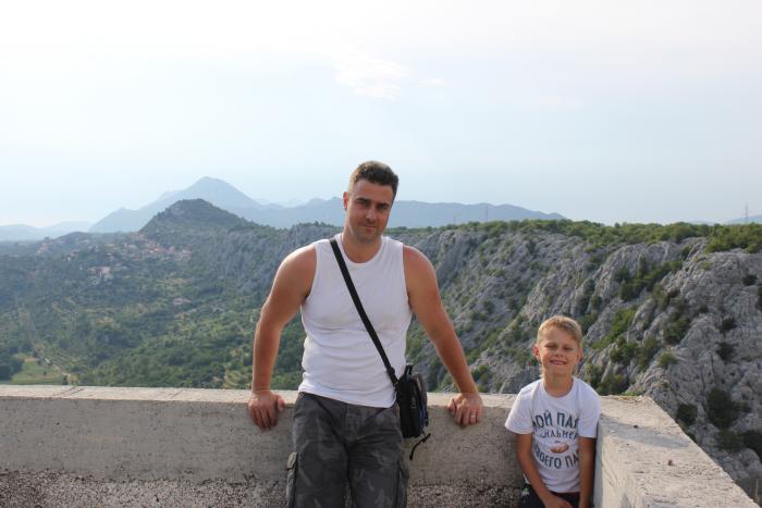 Сделав 2-3 поворота на въезде в Макарску, мы быстро нашли наше место. Через 3 минуты нас уже встречал хозяин, еще через 5 он помогал разгружать бокс и вещи, а через 15 я сидел в кресле на балконе, держа прохладную после автохолодильника бутылочку польского пива Живец, и любовался увитыми цветами виллами на фоне пепельно-серых склонов. Словно какой-то «бутерброд»: пронзительно синее небо, пепел камня, зелень сосен и яркие краски цветов на виллах. 2800 км были позади. Можно было расслабиться…
