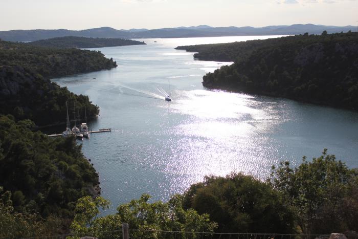 Где-то далеко внизу — плотина, которая держит воду реки Цетины, которая недалеко вверх по течению низвергается одним из крупнейших в Хорватии водопадов… И уходящий вдаль поток, теряющийся средь гор и дерев. Что? Как? Какие люди это делали, что ими двигало? Не ясно, но удивительно красиво и, опять это слово, монументально.