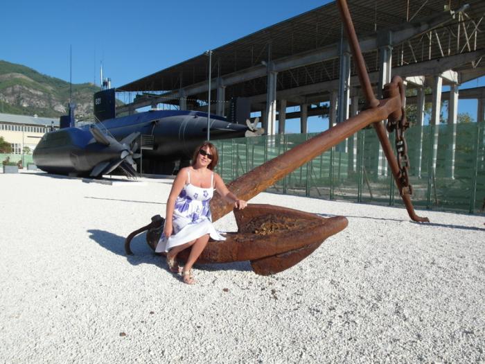 музей морского наследия с настоящими подводными лодками возле него, большими якорями прямо на территории.