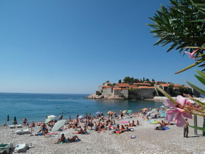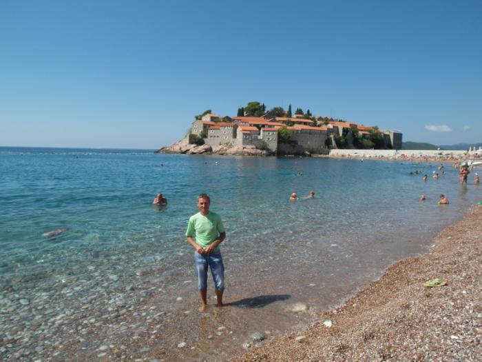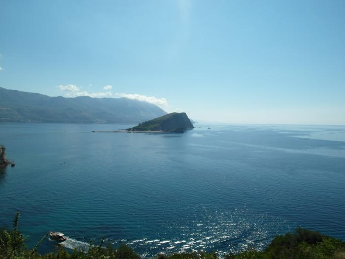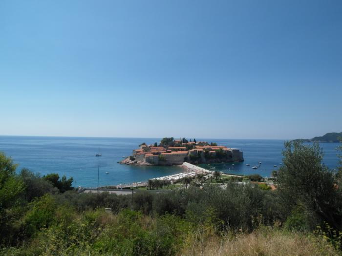 Едем дальше через современный курортный город Будву: здесь все подчинено идее туризма – отели, коттеджи, кафе, рестораны… Толпы народа перемещаются к морю и от него, огромная тусовка… Дальше дорога бежит через прибрежные городки Бечичи, Рафаиловичи, Пржно, по указателям спускаемся к острову Святого Стефана – символа Черногории. Автомобиль оставляем на небольшой бесплатной стоянке, а сами пешком через парк спускаемся к морю.