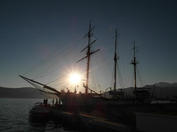 Даже есть трехмачтовый парусник – на закате смотрится необычайно эффектно…