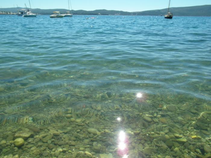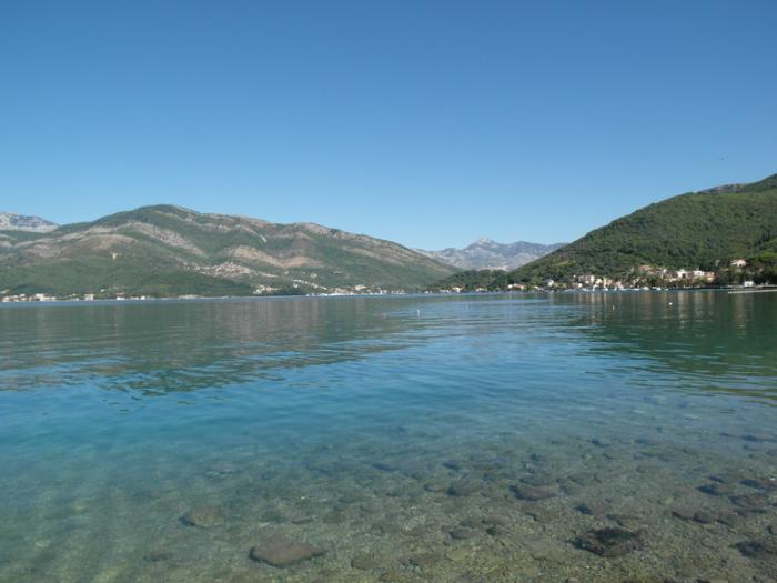 Ясным солнечным утром выходим на пляж – узкую полосу гальки возле набережной. В 100 метрах есть еще детский пляж, но там народу побольше. С удовольствием купаемся в теплом ласковом море. Адриатика солёнее, чем Черное море, поэтому вода сама держит на поверхности, что очень хорошо – я пловец неважный, можно сказать никакой.., а так могу плавать и до буйков!… Над бухтой постоянно взлетают самолеты – рядом в Тивате находится местный международный аэродром. Вообще, Боко-Которская бухта славится тем, что море в ней не открытое, и поэтому спокойное и теплое.