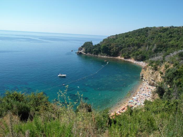 Очень много отдыхающих с детьми, причем, с самыми маленькими. Находим себе место у самой воды и с удовольствием погружаемся в теплую прозрачную воду. Некоторое время предаемся неге, отдыхая на пляже и наблюдая за окружающими. Отовсюду слышна русская речь – в Черногории очень много отдыхает россиян.