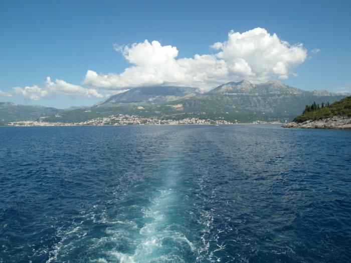 На борту теплохода гиды на разных языках, в том числе и на русском, рассказывают об окружающих нас достопримечательностях. Наш путь лежит на выход из бухты. Справа у подножия огромных живописных гор расположен город Херцег-Нови, слева – практически необитаемый зеленый полуостров Луштица.