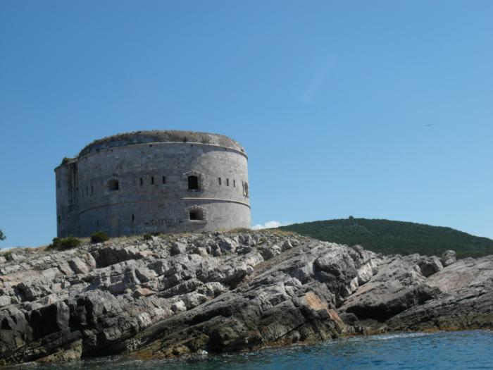 Пейзажи вокруг нереально красивые. На выходе из бухты в Адриатическое море на крохотном диаметром всего двести метров острове Ластавица стоит форт Мамула, построенный в середине XIX века.