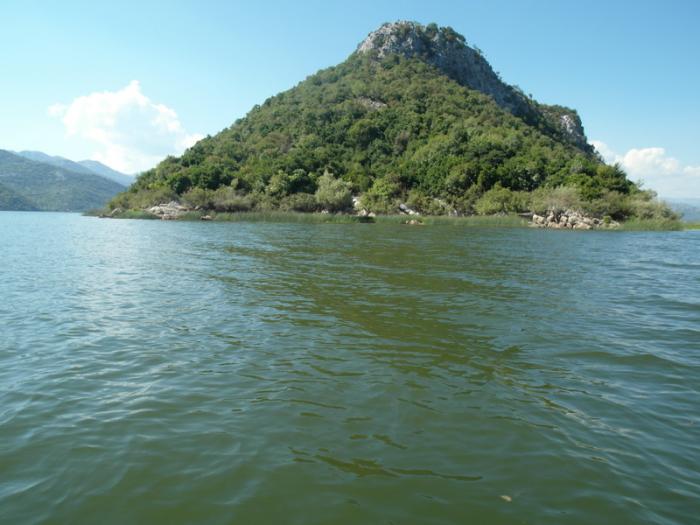 Озеро огромно, одна часть его принадлежит Черногории, другая – Албании. Через озеро построена дамба и мост, по которым проходит как автомобильная, так и железная дороги. Сразу за мостом стоянка для автомобилей, где на нас набрасывается местный туроператор с предложением прокатиться на лодке по озеру. Сбиваем цену с 50Є на 45Є за 1 час, и моторка, пыхтя дизелем, везет нас по озеру.