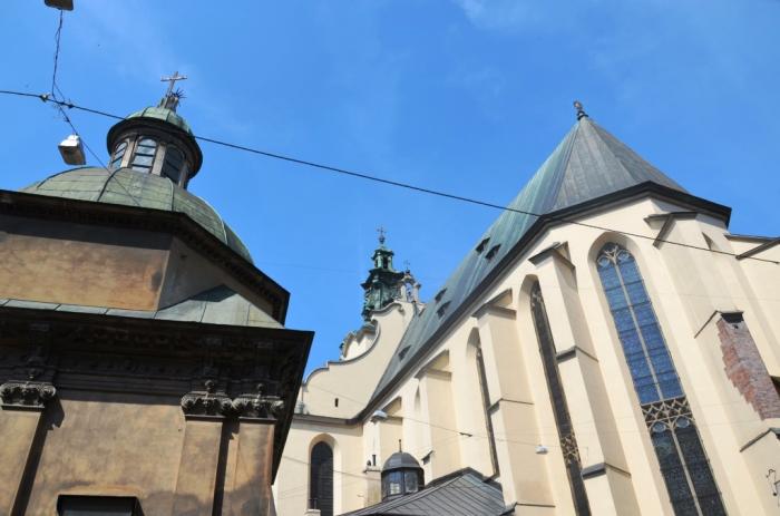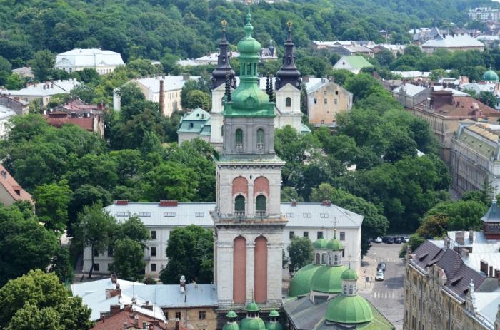 Преодолев кучу ступеней, костеря свою глупость, ежесекундно смахивая пот от жары и карабкания, я все же осилил пеший подъем на ратушу, и перед нами открылись иные красоты Львова…