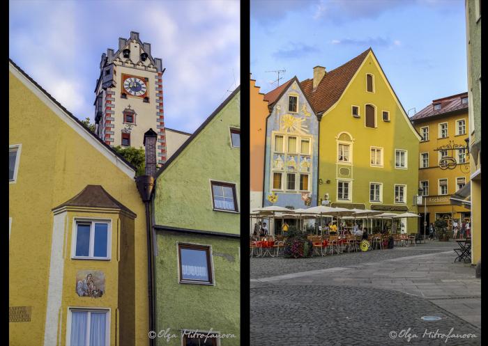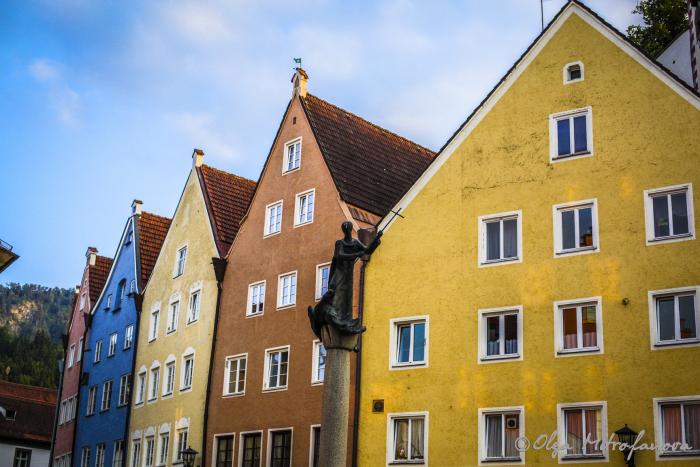 Отличительная черта Фюссена – это роспись домиков в стиле Lüftlmalerei. Другими словами, объемная имитация архитектурных элементов (балкончики, наличники и т.п.)