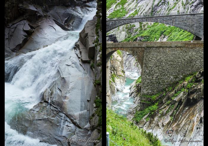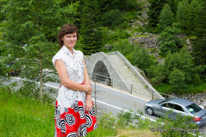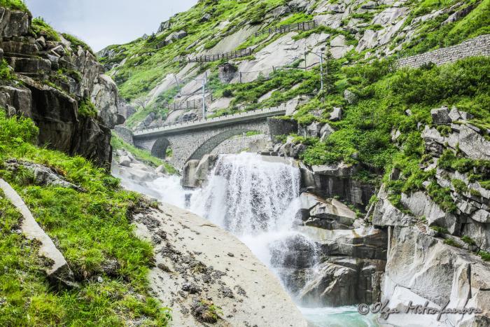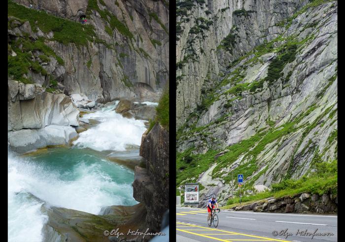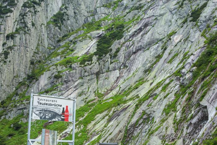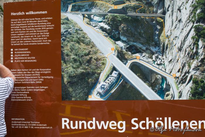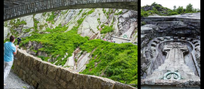 Мы ехали к перевалу Сен-Готтард, который соединяет немецкую и итальянскую части Швейцарии. Он считается главным горным перевалом, который ведет на юг Европы. Именно в этом месте, на высоте 2108 метров над уровнем моря в 1799 году великий русский полководец Александр Суворов вел свои войска, преодолевая невозможные обрывы. Даже сейчас, когда проложены дороги, есть авто и жд-мосты, поражаешься величию этих неприступных гор. А ведь первая дорога в этом месте была проложена, внимание! – в XIII веке (ничего удивительного, это же Швейцария!) Причем эта мощеная дорога сохранилась до сих пор и пользуется высокой популярностью у пеших туристов.
