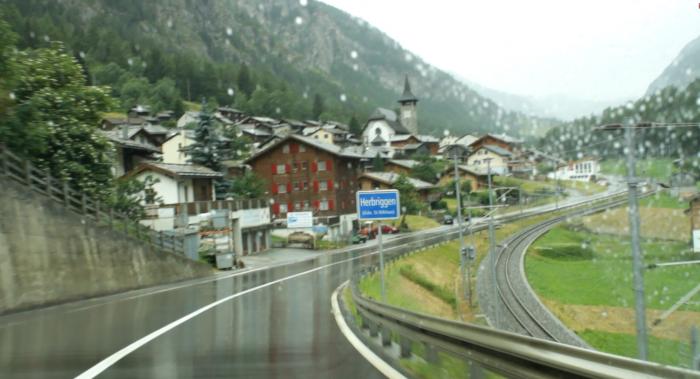 Везде, на станции и в поезде, есть часы. Шаттл отправился минута в минуту, нет даже секунда в секунду, в назначенное время. До Церматта ехать каких-то 15 минут. Дождь разошелся, стучал в окна поезда. Совсем скоро мы приехали на вокзал Церматта.