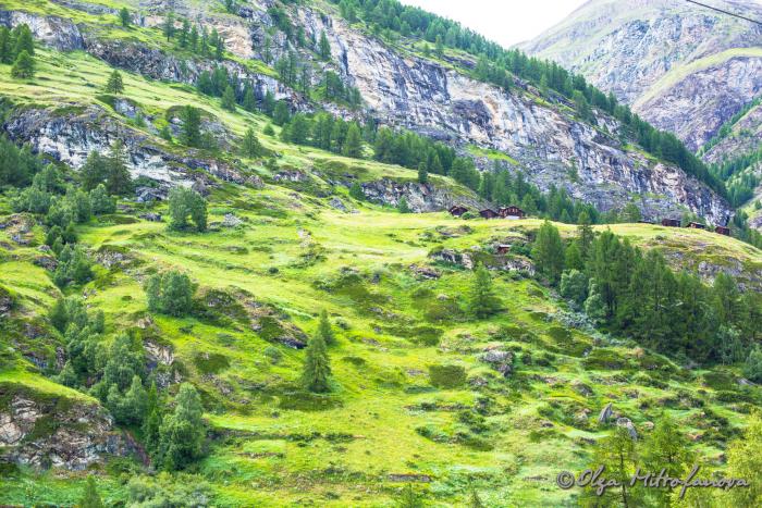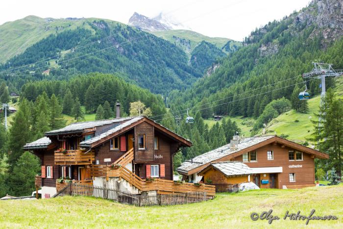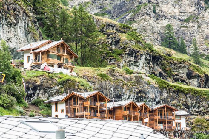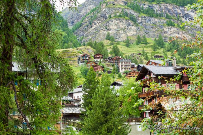 Мы подъезжали к городку Тэш, где предстояло оставить машину на паркинге и дальше ехать на поезде до Церматта. Ведь по экологическим соображениям автомобильное движение в Церматте полностью запрещено. Дорога стала петливистая, постоянно поднималась вверх. Начал моросить дождик, что нам было совсем не на руку. Ведь мы хотели полюбоваться на символ Церматта, да и, наверное, всей Швейцарии – гору Маттерхорн высотой 4478 м, которая, словно зубик, устремляется в небо. Мы въехали в город. Везде, будто бы из-под земли выросло множество гостевых домов и отелей. Но я смотрела за знаками, ведущими на паркинг. Парковок, кстати говоря, несколько: одни расположены ближе, другие –дальше. Видимо, ценник тоже отличается. Но я завернула на самую первую. При заезде взяла карточку, где прописано время нашего заезда и стала искать место. Точнее, даже не искать, а выбирать.