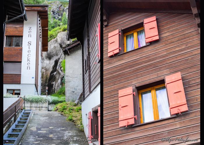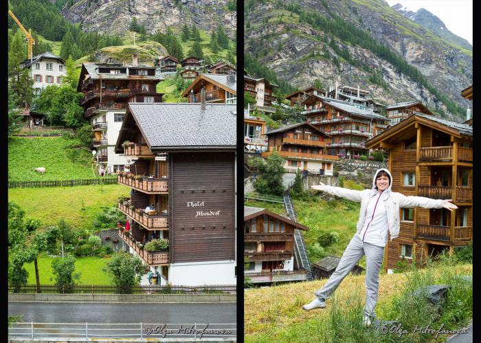 Мы же пока дошли до своей гостиницы, немного промокли под дождем. Зонтики наши благополучно лежали дома в России. Благо, в номере можно было включить отопление и немного просушить одежду. А номер-то с видом на Маттерхорн…. Должен был быть…