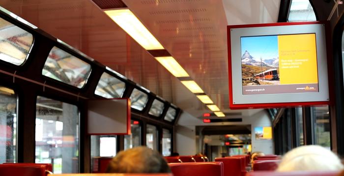 В кассах мы купили билеты туда и обратно стоимость 16 франков. На табло было представлено расписание ближайших поездов. До следующего шаттла в сторону Церматта оставалось минут 7-9. Так что можно было спокойно проходить через турникеты на станцию. Принцип такой же, как и в метро, прикладываете билетик и отпускаете, загорается зеленый огонек, значит можно идти. Свекровь разволновалась, замешкалась, долго держала билетик, огонек сначала загорелся зеленым, а потом красным. И турникет не хотел ее пускать. Но группа французов помогла решить эту ситуацию и пропустила Юрину маму по своему билету.