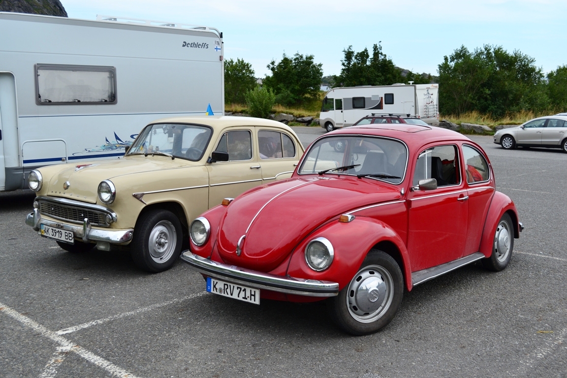 Каждое утро начиналось с вытаскивания с заднего сиденья коробок с продуктами, посудой. Потом приготовление легкого завтрака, сам завтрак, мойка посуды. Потом сборка палатки, спальников, пенок. Укладка в коробки посуды и продуктов. И укладка всего этого в автомобиль. Через неделю, вся эта утренняя процедура нас стала немного утомлять. Но все это было мелочи, по сравнению с тем, какие пейзажи были вокруг. Какое удовольствие мы получали от увиденного и вообще от такого драйва. Удовольствие получал и наш Москвич-407, когда ему моргали фарам и махали вслед руками с удивленными лицами. Ему нравилось непринужденно катиться по бескрайним просторам Скандинавии и кушать качественный норвежский бензин за два евро. За все путешествие он не разу не чихнул и не заставил волноваться за себя.