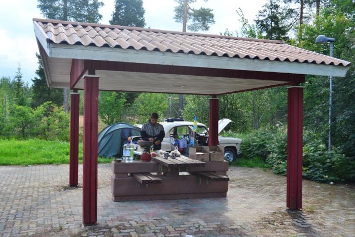 Обязанности по умолчанию (ни кто не был против) мы поделили так. Я,- водитель-механник, мойщик посуды и утром кипячу чай. Макс — штурман, повар, фотограф, связист-радист, собиратель-разбиратель палатки и немножко переводчик(он знал на сто английских слов больше, чем я). Основная задача Макса связь с домом и друзьями. При въезде на АЗС он искал WI-FI, если он присутствовала, Макс подключался к нему через ноутбук или телефон НТС. Открывали Скайп и общались. В Белоруссии WI-FI отсутствовал. В России на Шелл-АЗС присутствовал. В Финляндии, Норвегии — получше. В Швеции — хуже. В Эстонии — везде. Вообще особых проблем со связью не было. На крайний случай СМС через Лайф. Макс выкладывал фото в Истаграм. За нами наблюдала Москва, Киев, Алупка.