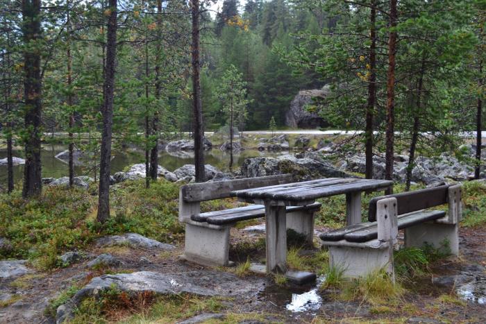Мы подъезжали к самому большому водоему Финляндии – озеру Инари. Сам видел и могу сказать оно бескрайнее. Берега сильно изрезаны, множество проток, заливов. Озеро находится на широте российского Мурманска. На подъезде к Инари попали под сильный дождь. Дорога пошла вдоль озера, непосредственно около воды. Нам уже поднадоела равнинная, прямая, ровная дорога по Финляндии. А тут пошли один за другим затяжные, закрытые и открытые повороты. Сразу вспомнил Южный берег Крыма, поднажал на педаль газа и стал на скорости входить и выходить из поворотов. Шел дождь, но дорога и резина была хорошая. Сзади было две машины, но обогнать они не решились (моя скорость была 70-80 км/час). Дождь закончился. Справа увидели стоянку, решили остановиться.