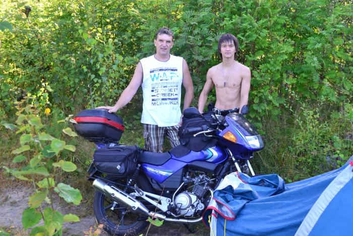 Доели вчерашний ужин. Неподалеку увидели байкера-одиночку. Подошли, познакомились. Звали Эдик, живет в Татарстане. Двигается в Лондон, ночует в палатке или у друзей. Поговорили.