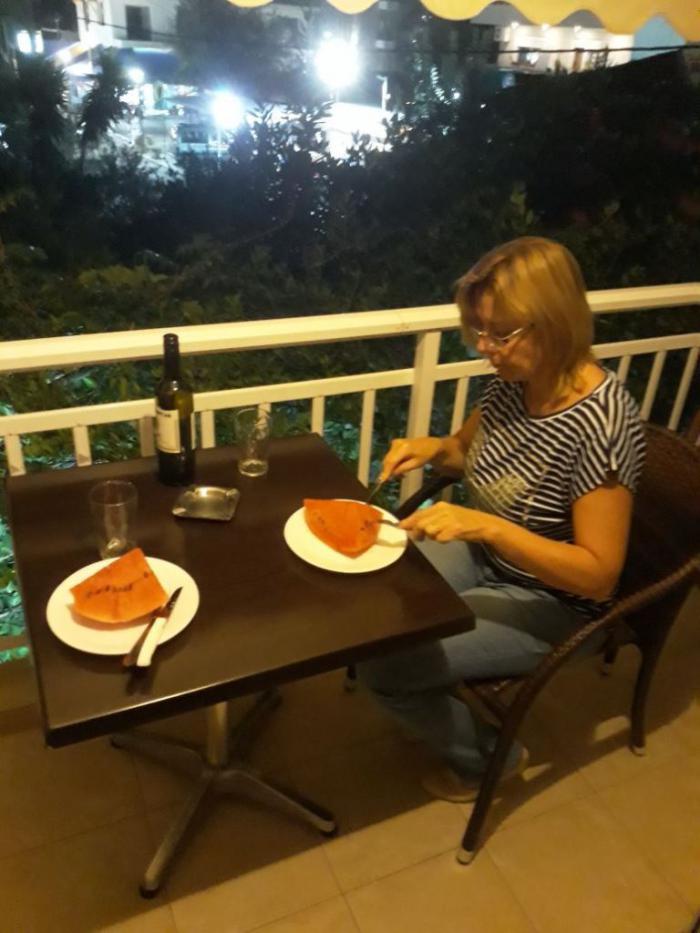 Питались, в основном, в полюбившейся в прошлый приезд таверне Пирофани (Taverna Pirofani). В этом семейном заведении готовят вкусно и недорого. Много местных. После восьми вечера не всегда найдёшь свободный столик.