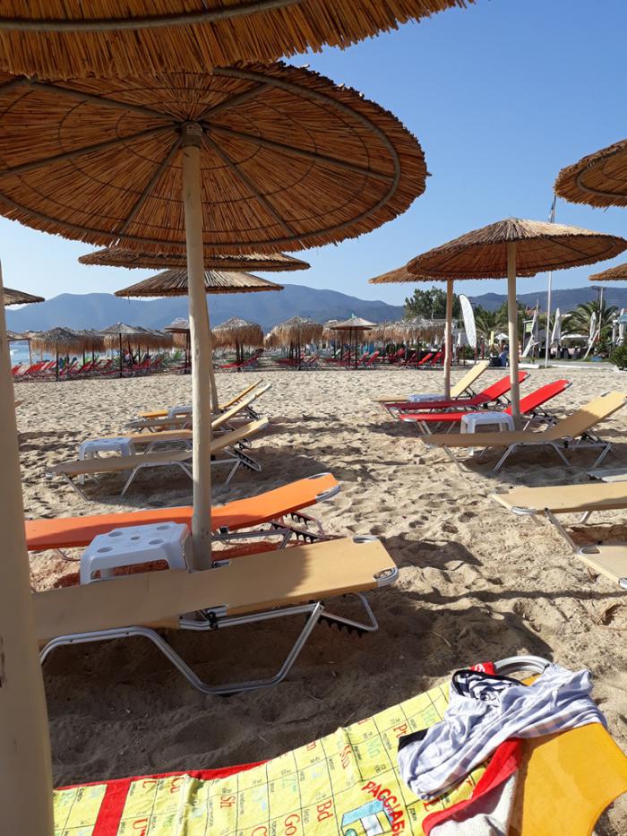 В Сарти на пляже можно бесплатно расположиться на песке на своём полотенце.