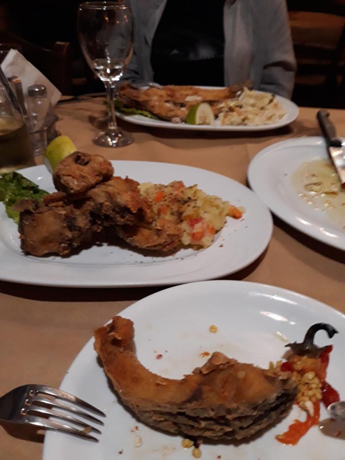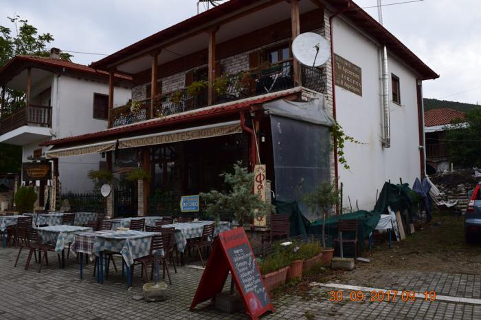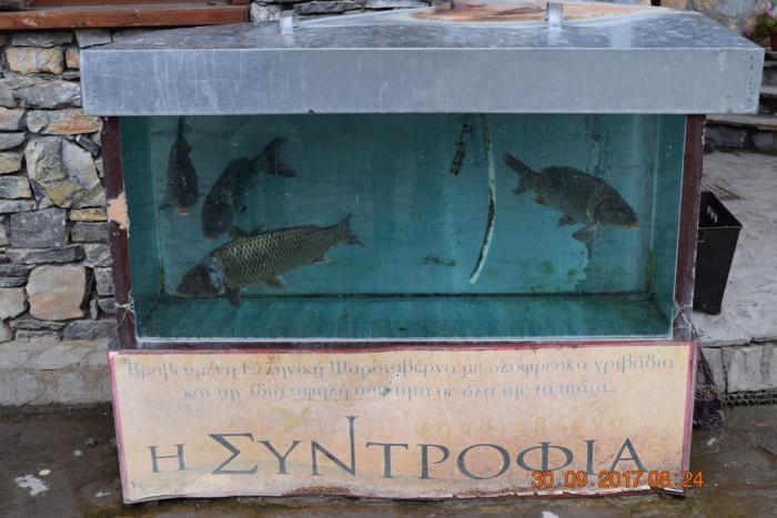 Выбор заведений общепита здесь не очень большой, поэтому пошли в «центровой» как нам показалось ресторан «Компания» («Η Συντροφιά»), где подают местного карпа, которого ловят при тебе в аквариуме.