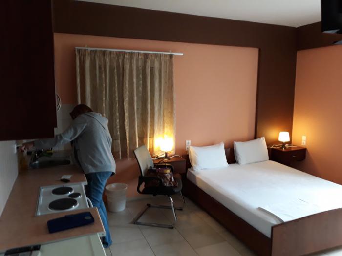 Отель в Янине бронировал накануне вечером. Я почти всегда бронирую жильё недалеко от исторического центра города, а здесь или я чего-то недопонял или в то время у них на Букинге было некорректное описание (сейчас исправили), но забронировал я в Amfithea. Это отдалённый район Янины. Нет, центр недалеко, его даже хорошо видно, но только через озеро.