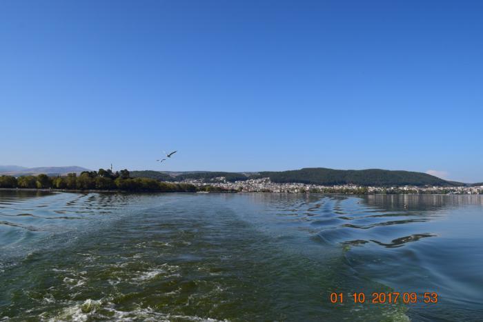 За десять минут катер доставит на остров. Само по себе путешествие на кораблике аттракцион, главное удачно устроиться, что бы удобно было фотографировать. На корме лучше всего.