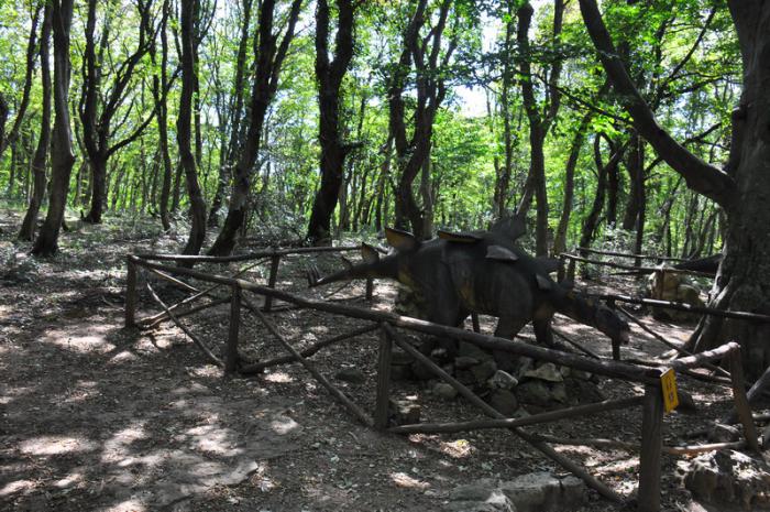 Еще есть парк с копиями динозавров, павильон со скелетом динозавра и смотровая площадка.