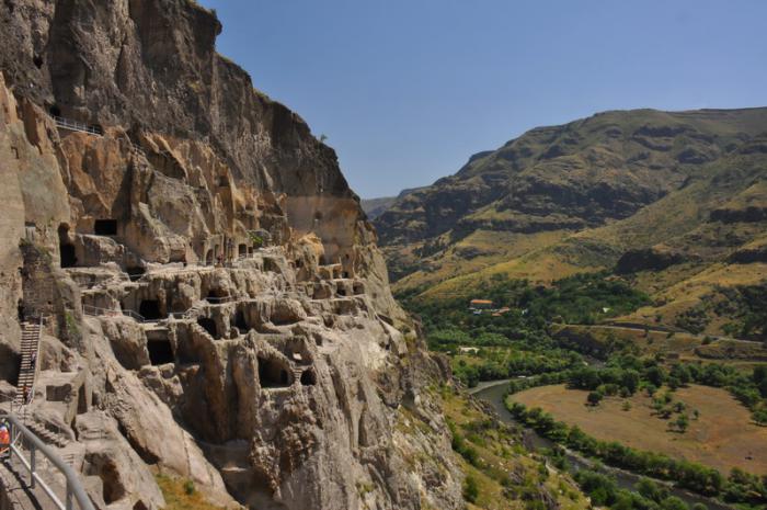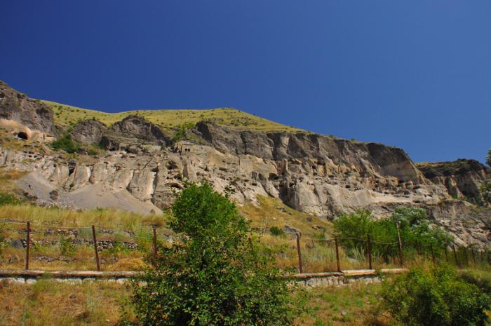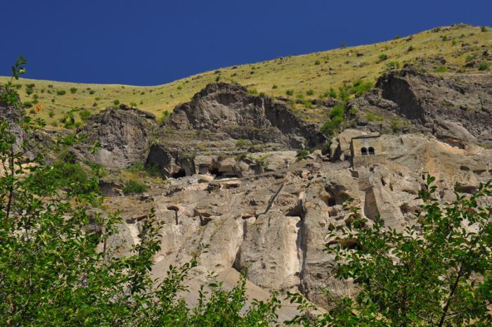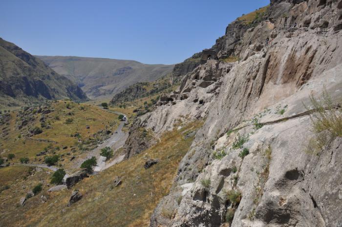 На следующий день едем в Вардзию, смотреть одноименный пещерный монастырский комплекс. Достопримечательность тоже из разряда обязательных к посещению. От Ахалцихе около 60 км. по хорошей дороге. На месте снова взяли гида – очень интересно. Цена вопроса – те же 25 лари. Снова пришлось полазить по горным тропкам и низким пещерам, но оно того стоит, да и тропинки тут благоустроенные.