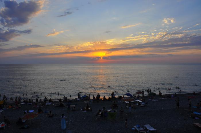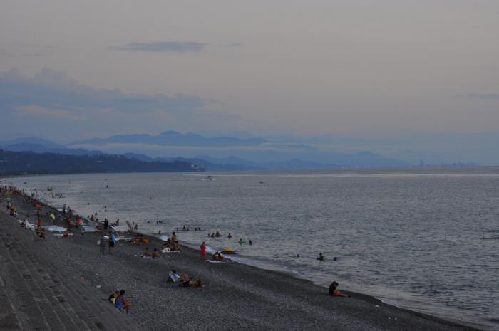 Отдых на море получился «овощным». Подъем-завтрак-пляж-тихий час-пляж-ужин-вечерний променад-отбой. Пляж напоминает доолимпийский Сочи с разницей «Чурчхела-Кукуруза-Напитки» все же звучит на грузинском языке, и нет железной дороги вдоль берега.
