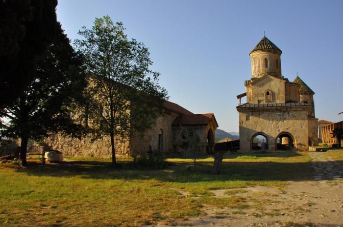 Загрузившись в прибывший мерседес, отправляемся на экскурсию. Таксист, известными только местным тропами, вывозит нас к искомым достопримечательностям. Начинаем с Гелатского монастыря.