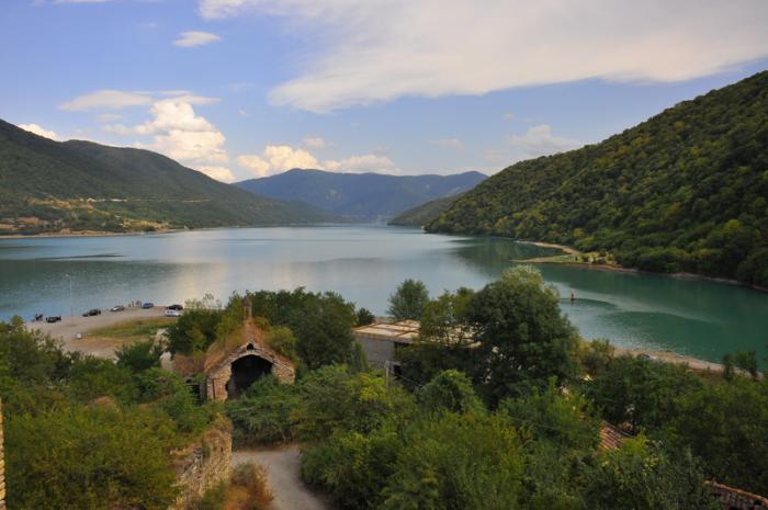 Остановились у крепости Анаури, километрах в семидесяти от Тбилиси, не смогли проехать мимо такой красоты.