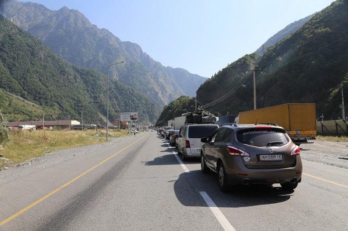 Нижний Ларс — начало очереди к границе, Верхний Ларс — пункт пропуска. Два часа вялого движения в густом аромате соляры. Фуры двигаясь рядом, щедро насыщали воздух собой.