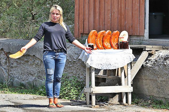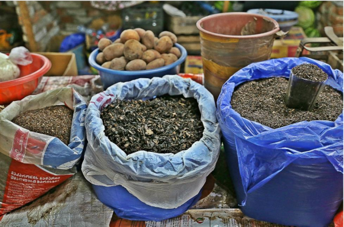 Везде продают *сванскую соль*. За стаканчик 2-2,5 лари. Стаканчик уже высыпан в пакет, так что на рилавках кучи пластиковых узелков жёлтого или оранжевого цвета. По всей остальной Грузии *сванская соль* дешевле, и в общем то такого же качества. Но тут как бы название обязывает. Сванская-значит в Сванетии будет самой сванской, хотя в Телави её на рынке видели и по 1 лари за стаканчик.
