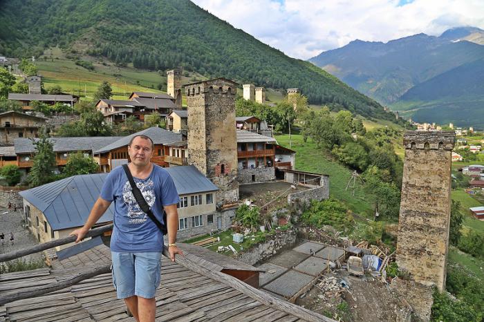 Узкие, пыльные щели в этажных перекрытиях и полуразрушенная крыша из старых досок. И самое обидное, что вид с крыши башни ничего не добавляет к обзору, это не самая высокая точка, это просто одна из высот рельефа Местии, и пройдя полчаса по любой из дорожек в сторону вы подниметесь на такой же уровень, но по дорожке.