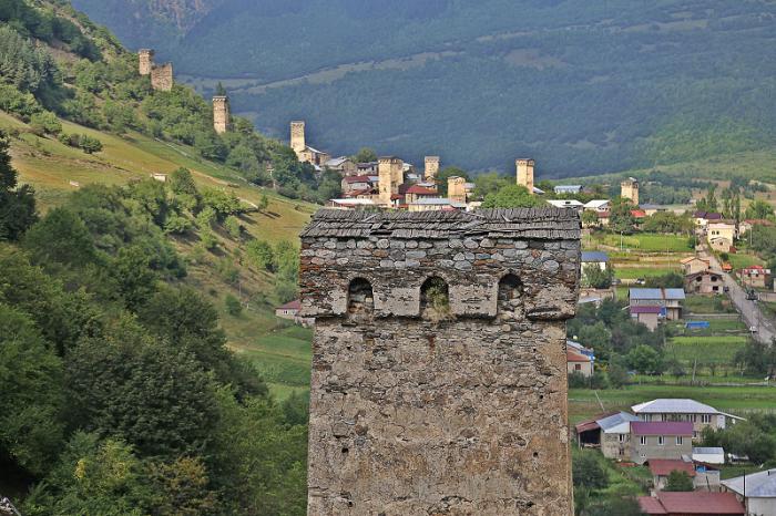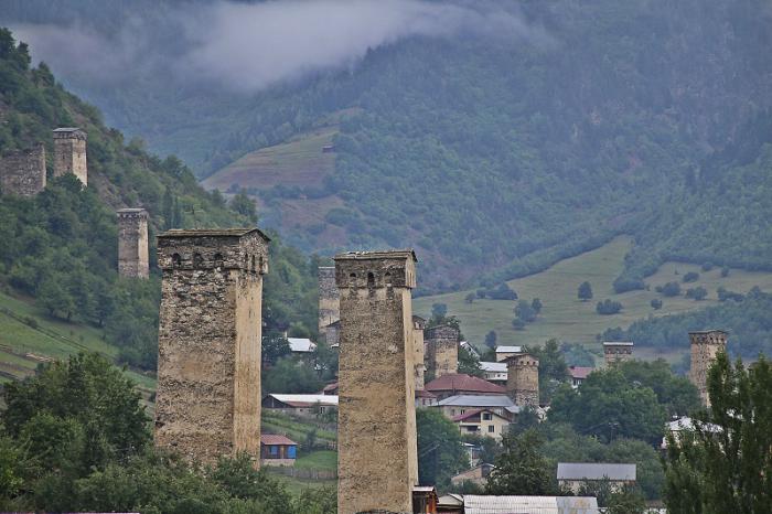 Сванские башни разбросаны по всей Местии. Некоторые скопления башен условно есть как бы в трех местах, но полно и башен единоличников.