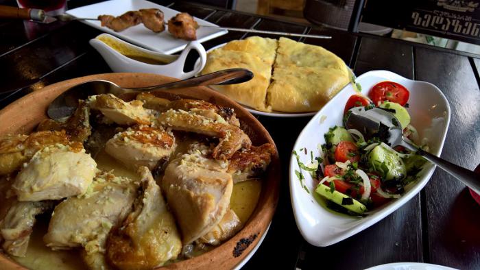 Заказываем кудбари, курицу Чкмереули. То, что считается исконносванской кухней.