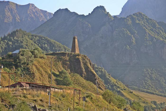 Буквально на въезде в Верхнюю Сванетию встречаем первую сванскую башню.