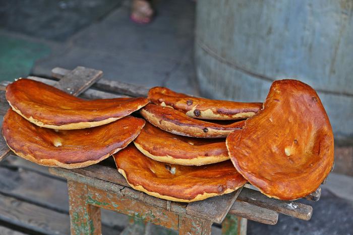 Особняком город Сурами. Только здесь предлагают “назуки”. Это сладкий хлеб с корицей, гвоздикой и изюмом. Есть его лучше в горячем виде. В самом Сурами назуки не продают (что удивительно). Им торгуют только вдоль трассы, и только на выезде из Сурами. Торговцев назуки вдоль обочин огромное количество. Они как группа поддержки постоянно машут этими хлебами встречным машинам.