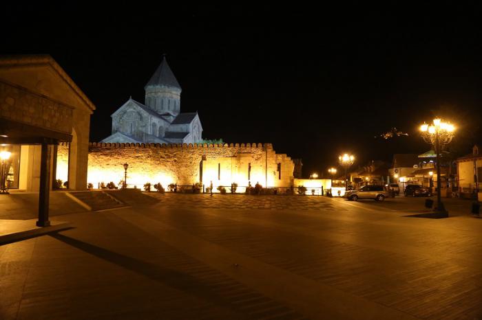 Центр Мцхеты туристически идеален, он крошечный, но насыщенно гармоничен. Всё красиво подсвечено, в одном стиле, аккуратно.
