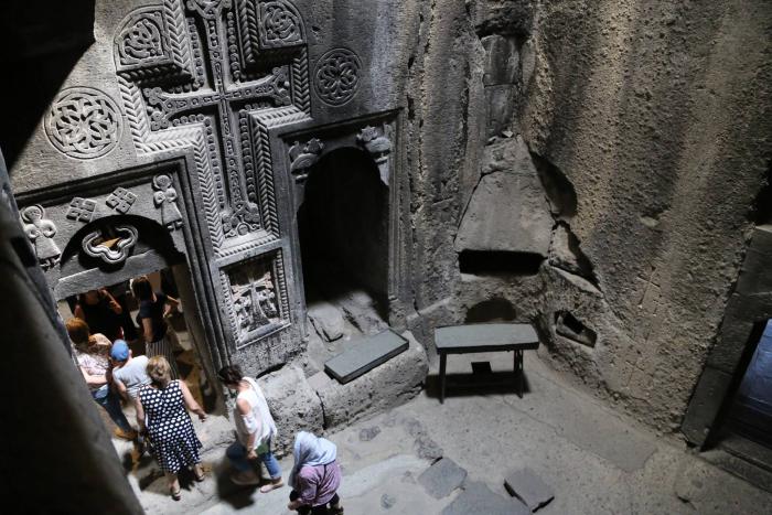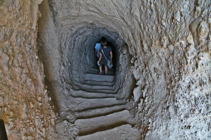 Монастырь начинал свою историю как пещерный, ещё в IV веке. Сейчас это целый комплекс храмов, часть из них скрыта в глубине скалы. В одной из них увидел трещину в полу, заглянул, внизу купольный зал нижней церкви. Туристы, свечи, полумрак.