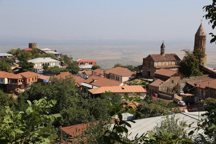 Город Сигнахи взобрался довольно высоко в горку. Он как бы в горной чаше, и по периметру окружен древней крепостной стеной.