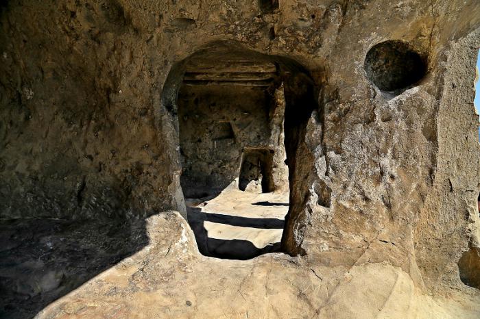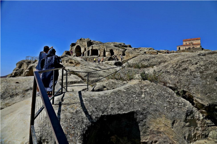 Но в пещерах прекрасно, даже не вериться, что тень на раскаленной плите способна делать такую прохладу. Среди туристов заметно расслоение, часть остается ждать своих друзей в прохладе пещер, часть отправляют выше ради селфи и фото. Раньше город был в шесть раз больше и окружен густыми лесами. Насчет размеров – верю, а вот насчет густых лесов глядя с вершины Уплисцихе на выжженную равнину- не очень.