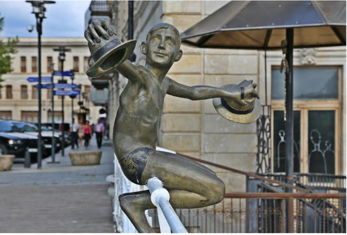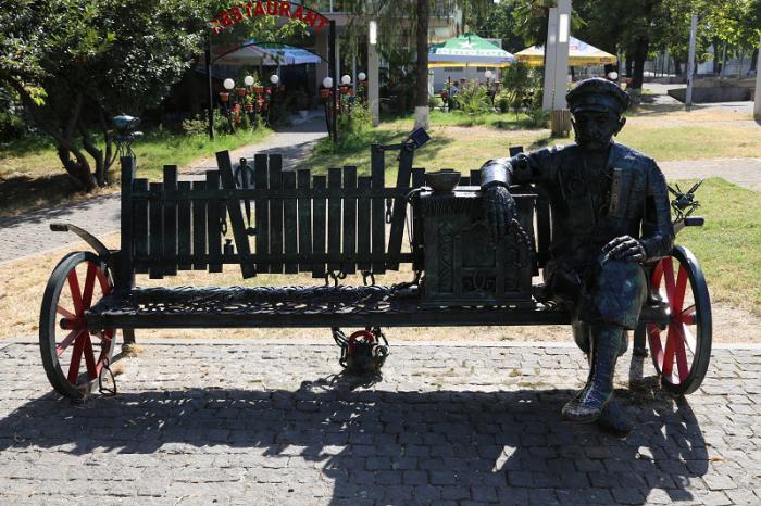 Обожаю сюжетные памятники, больше всего люблю в новом городе встретить какую то необычную фигурку из бронзы. Поздно вечером специально пересмотрели фильм Шенгелая “Необыкновенная выставка”. Смотреть его в Кутаиси как усилитель вкуса. Доброе и удивительно светлое кино о местах, по которым ходили целый день.