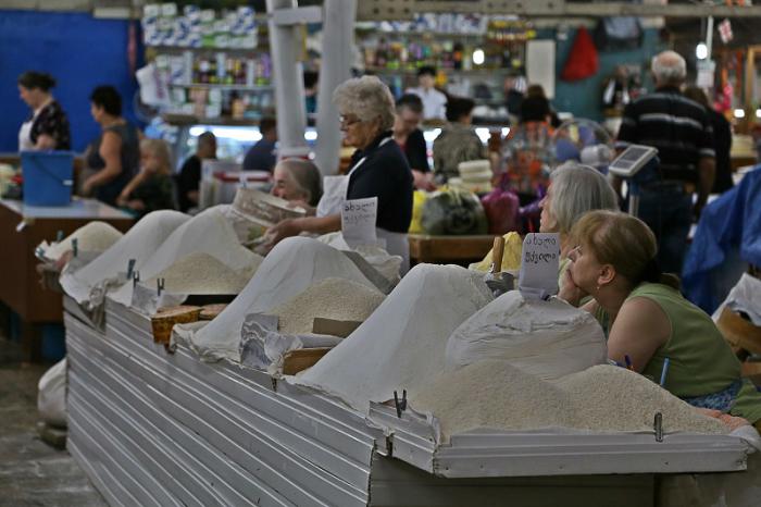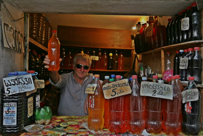 На рынке и по городу во многих местах торгуют разливным вином, цены вдвое ниже магазинных.
