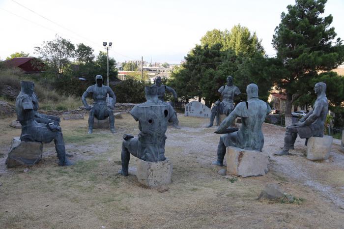 Под крепостью есть композиция сидящих в круге воинов. Типа….