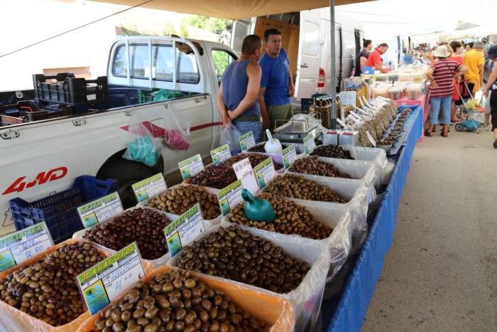 Потом оливки. Вяленые, моченые, соленые и т.д. Вариантов сотни, рецептов тысячи. В каждой дереве свои. При этом почти каждый городок в один из будних дней на улицах города устраивает сельский рынок.